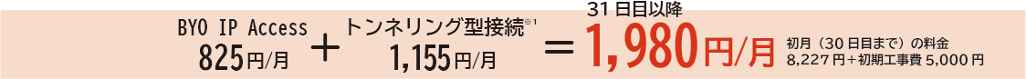 | 初期工事費 | 初期工事費が必要なサービス(BYO IP Access、IPトランジットサービス)を含むお申込み1件ごとに1回ご請求いたします。 | ¥5000 | - | - |